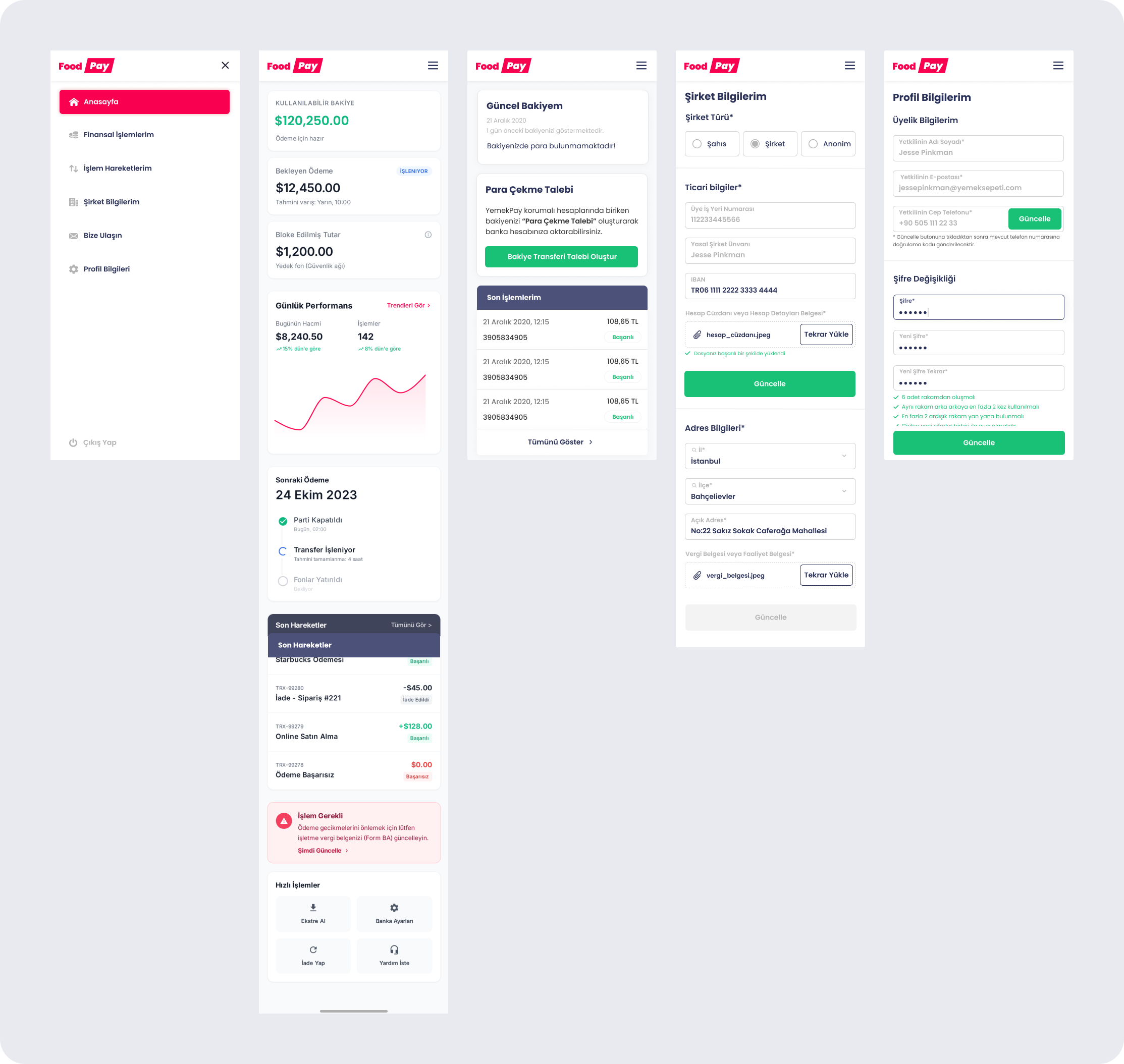 FoodPay (YemeksepetiPay) is a payment and virtual POS platform designed from scratch to enable businesses to receive online payments securely, operating under TCMB regulations. From day one, the product was shaped with a strong UX foundation, taking regulatory requirements, security considerations, and financial operations into account.